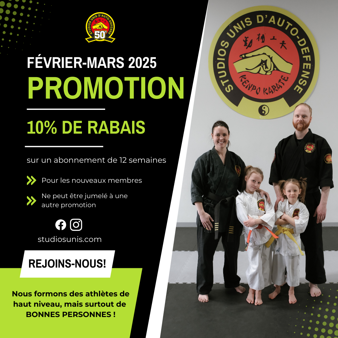 L’excellence des arts martiaux au Québec depuis 1974. Nous enseignons le style «Nick Cerio’s Kenpo Karate» alliant la force et l’agilité et qui est pratiqué dans un environnement respectueux et non agressif. La fédération des Studios Unis est un des plus importants regroupements d’écoles d’arts martiaux reconnues au Québec. Les Studios Unis sont établis dans la très grande grande région de Québec et de Lévis ainsi qu’à Portneuf, Chicoutimi, Dolbeau-Mistassini, Laval-Ouest, St-Jérôme et en Beauce. La fédération dénombre vingt-deux succursales qui offrent diverses disciplines telles que le karaté, la boxe, cardio boxe et la mise en forme. Des camps d’été et de la relâche scolaire sont aussi offerts pour les enfants.